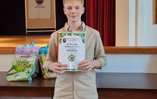 Žiak siedmeho ročníka Jonatán Stano na literárnej súťaži Račiansky jahodový kvet získal 3. miesto.