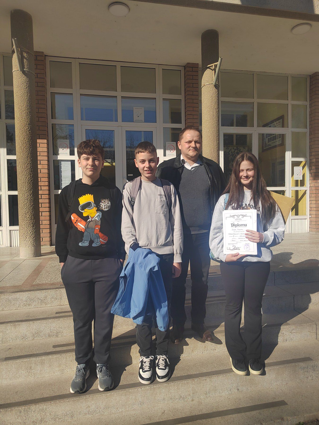 Zahvaljujući predanom radu, upornosti i ljubavi prema znanju, naši učenici ostvarili su izvanredne rezultate i izborili plasman na državno takmičenje. Ovaj uspeh je rezultat zajedničkog truda nastavnika i Centra za talente, koji kontinuirano prepoznaju i razvijaju potencijal mladih matematičara. Rezultati: 5.razred Jakub Benka (POHVALA) 6.razred Luka Petrov (DRUGO MESTO,