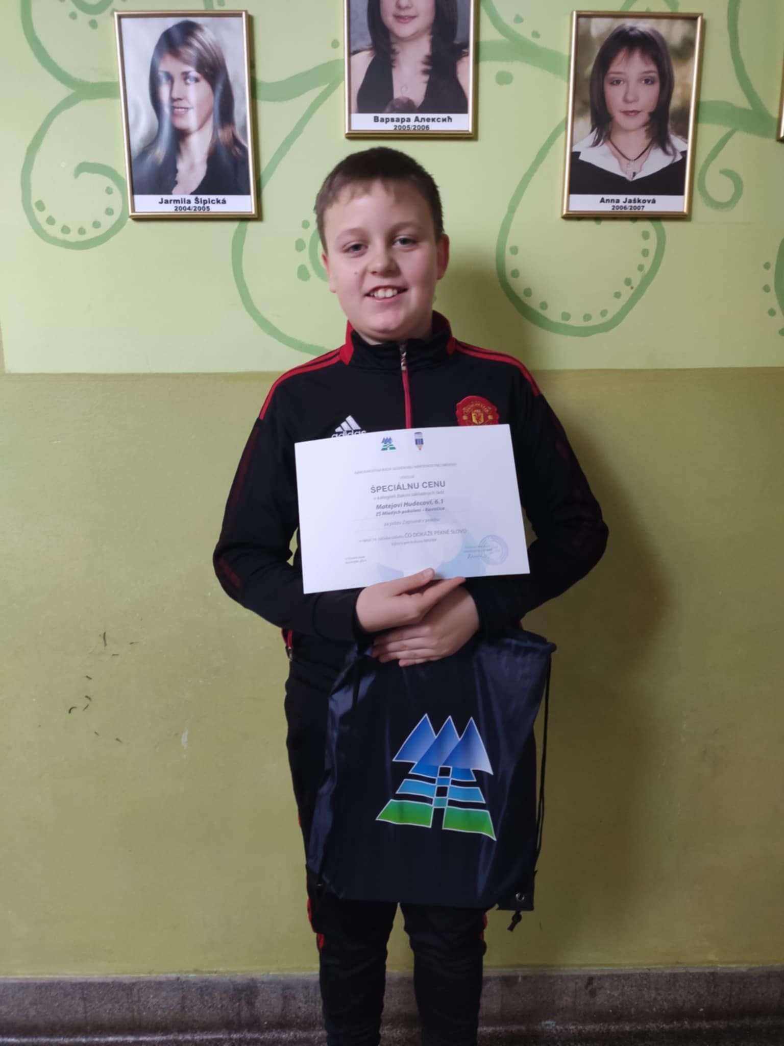 Dňa 18.12.2024. na literárnom súbehu Čo dokaže pekne slovo náš Matej Hudec získal špecialnu cenu za prózu.