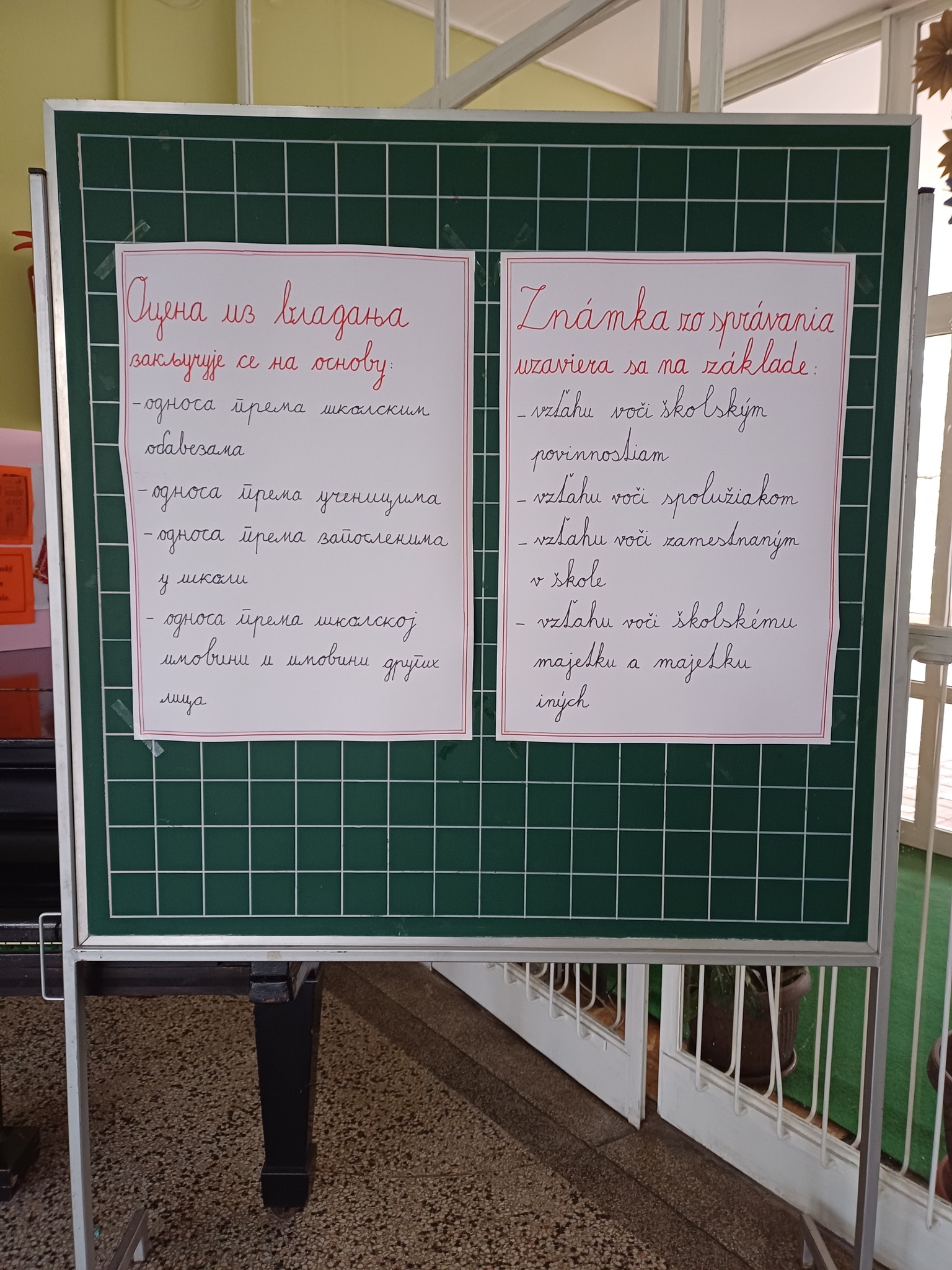 Učiteljica Ana Čipkar Farkaš je izradila panoe o ocenjivanju vladanja koji stoje u holu škole.