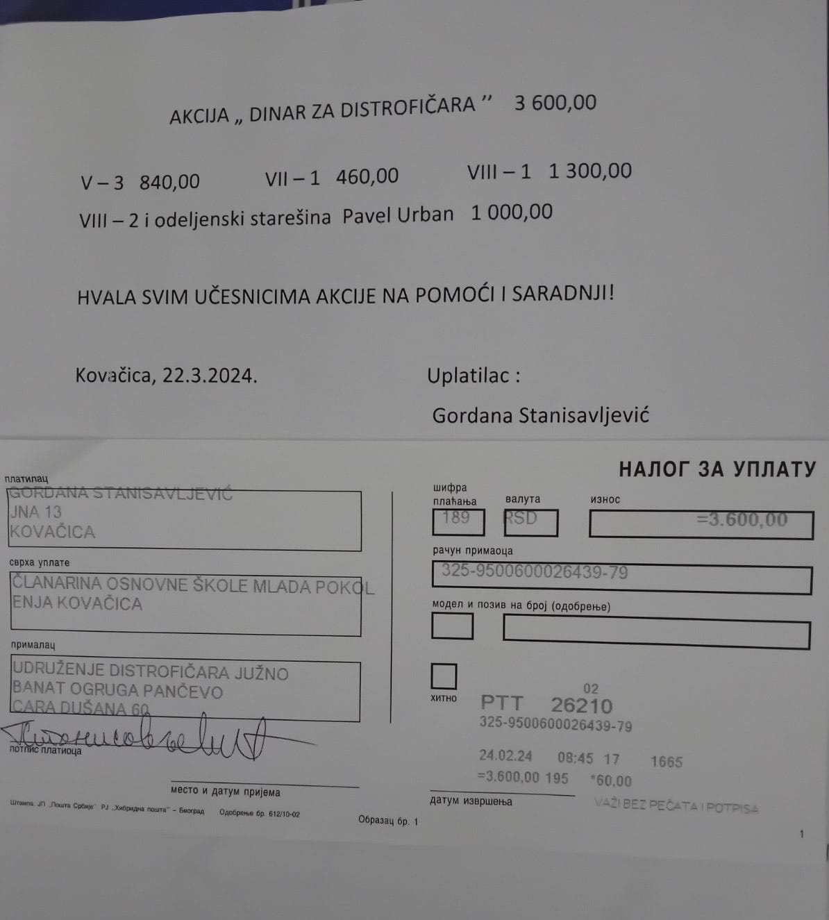 U okviru akcije Dinar za distrofičare sakupljeno je 3600 dinara.