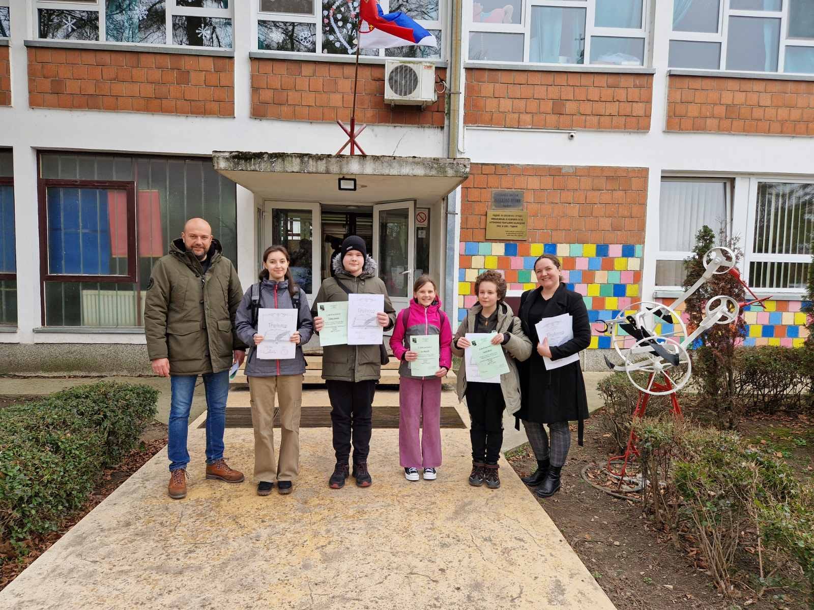 Dana 24.2.2024. je održano opštinsko takmičenje iz fizike u Idvoru. Naši učenici su bili uspešni. Hana Krišan 8-3 1. mesto Filip Jonaš 7-1 1.mesto Vasil Barca 6-2 1.mesto Iva Ðuriček 6-2 2.mesto Milica Petrov 6-3 3.mesto