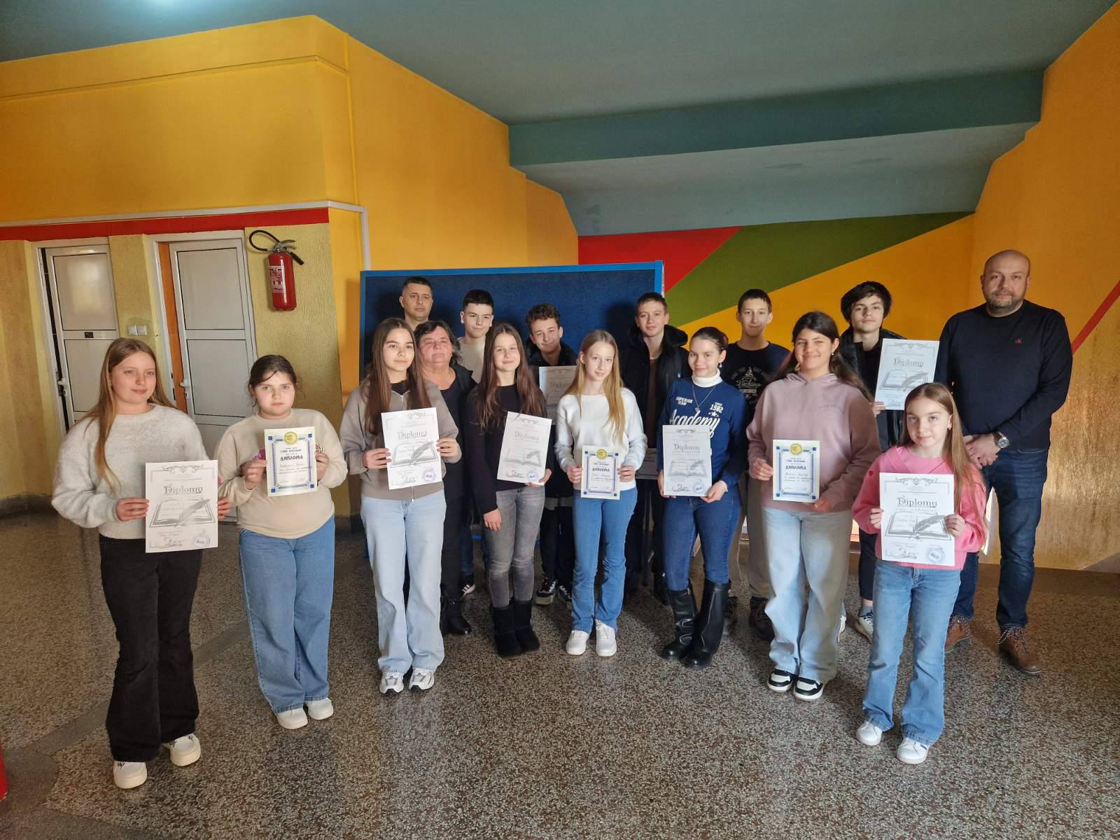 Novak Đurović 3.mesto na Opštinskom nivou. Na Okružno takmičenje uz osvojeno 3.mesto po rangiranju Ministarstva plasirali su se četiri učenika: Vanesa Čech-šesti razred Erik Krišan - sedmi razred Milica Petrov i Ivan Glozik - osmi razred. Mentori učenika Zuzana Kutalek i Boris Pišpecki.