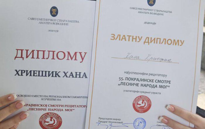U petak 11.4.2025. održana je zonska smotra recitatora u Kovinu. Naši recitatori u kategoriji mlađeg uzrasta Tara Karkušova 2.1 i Una Živković 3.3, kao i stariji recitatori Karol Lukač 6.2 i Hana Hriešik 8.1,
