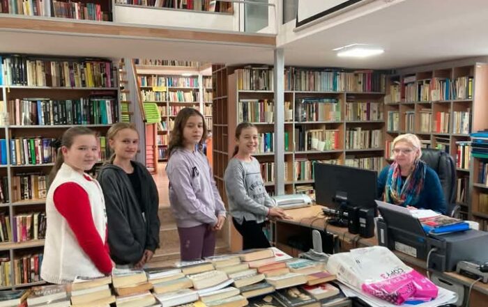 Dňa 9.12.2024 Anička Zlochova darovala kníhy do školskej knižnice.