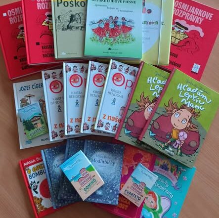 Učebné pomôcky, didaktické hry, nástenné mapy a lektúrové knihy zo Slovenskej republiky, ktoré v rámci projektu Národnostnej rady slovenskej národnostnej menšiny pricestovali do našej knižnice. Pomôcky finančne podporil Úrad pre Slovákov žijúcich v zahraničí