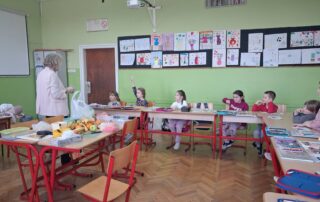 Učenici I-2 su na času srpskog kao nematernjeg jezika uvežbavali reči i izraze vezane za temu: zdrava hrana i čuvanje zdravlja. Cilj časa je bio i prezentovati roditeljima znanja, veštine, i umeća koja su prvaci usvojili. Hvala roditeljima za pomoć u pripremanju čudesnih zalogaja – voćne salate.