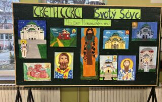 Povodom školske slave – Svetog Save, u holu naše škole nalazi se izložba učeničkih likovnih radova koja svedoči o stvaralačkom duhu, mašti i osećaju za lepotu kod naših učenika. Učenici od 5. do 8. razreda kroz boju, liniju i oblik izrazili su svoje viđenje lika i dela Svetog Save – kao prosvetitelja i duhovnog vođe. Svaki rad nosi lični pečat mladog autora, ali i zajedničku poruku o značaju znanja, vere, kulture i tradicije koje Sveti Sava simbolizuje.