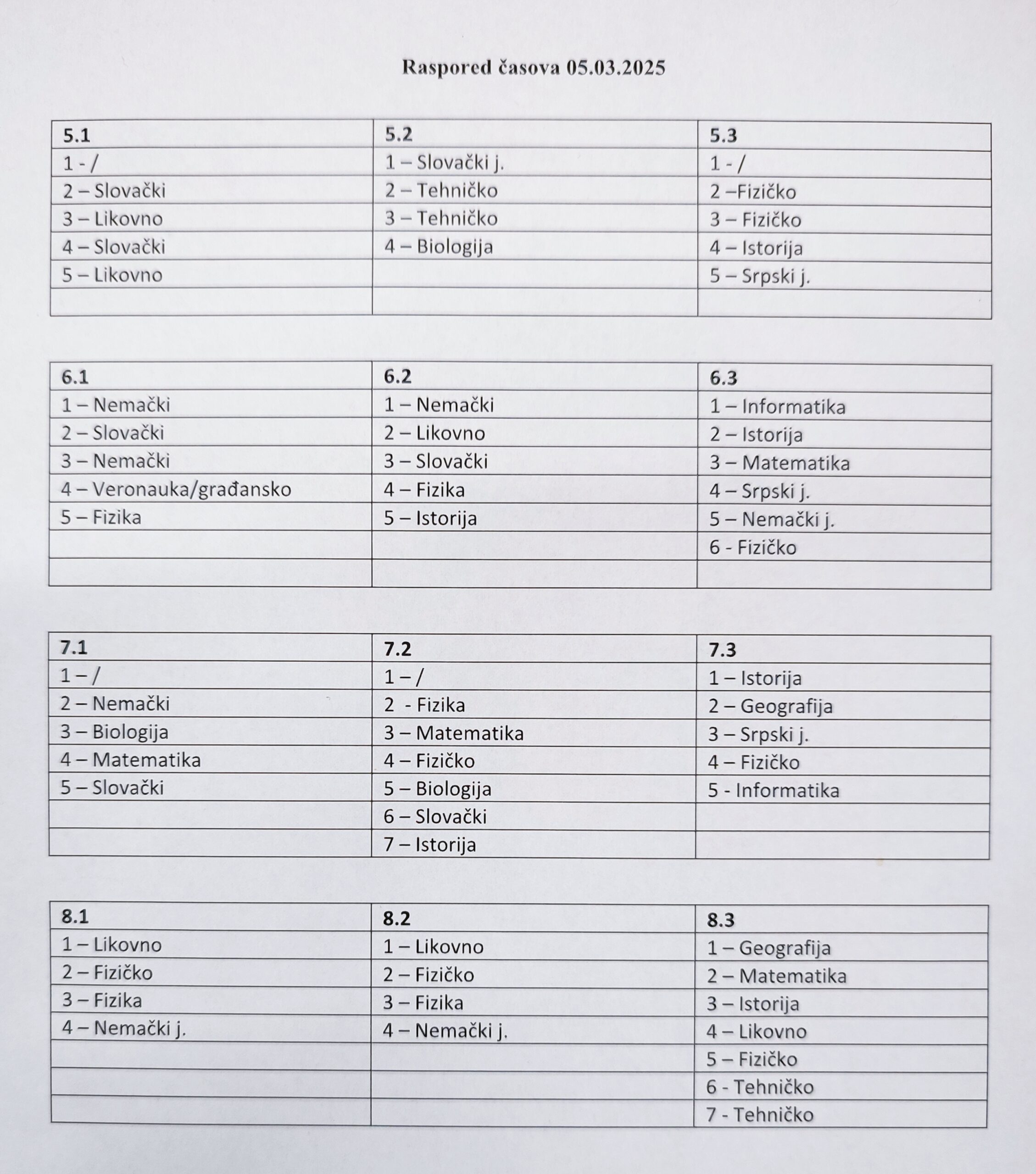 Ovim putem Vas obaveštavamo o realizaciji nastave u Školi za sredu, 05.03.2025. godine