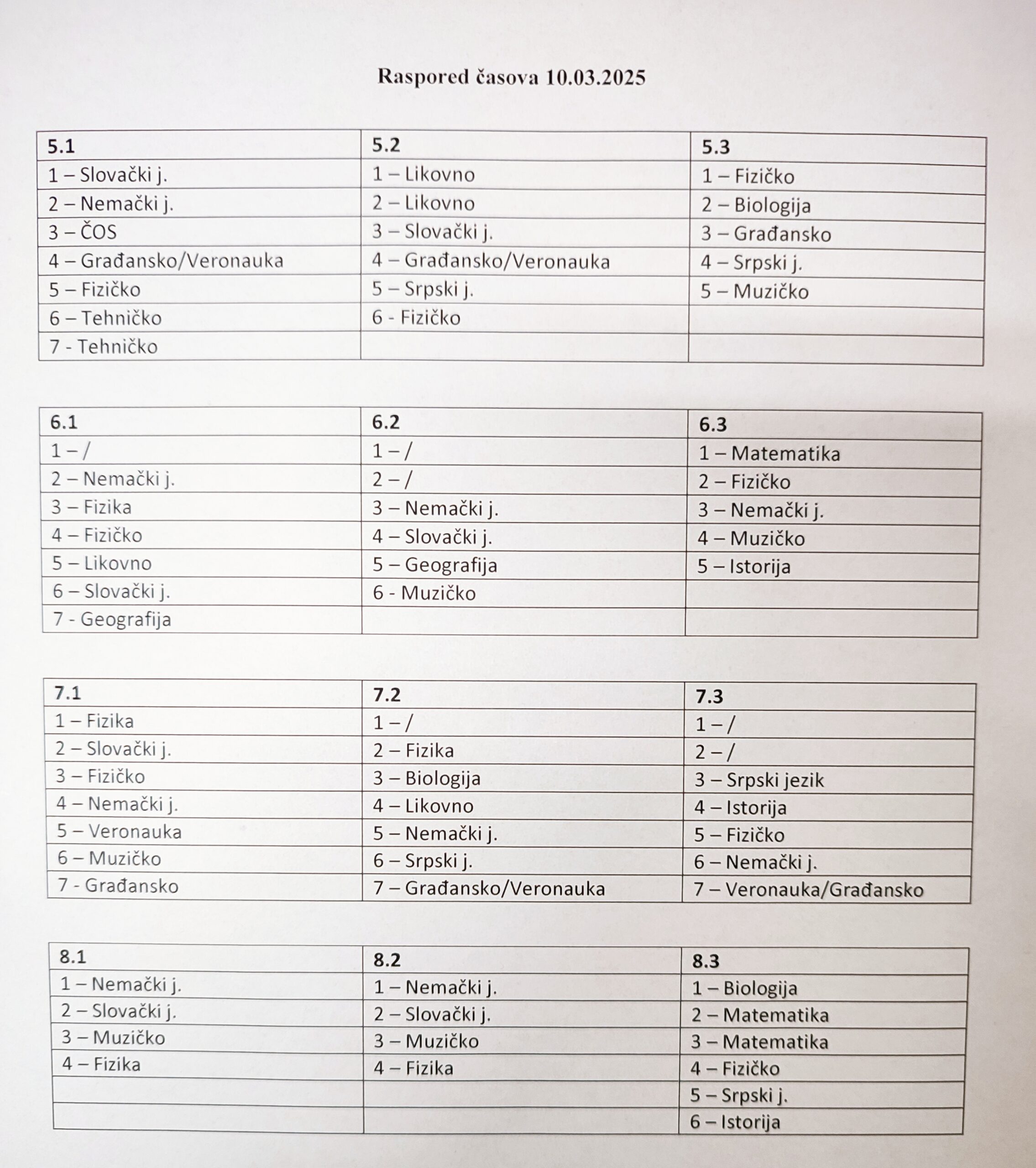 Ovim putem Vas obaveštavamo o realizaciji nastave u Školi za ponedeljak, 10.03.2025. godine