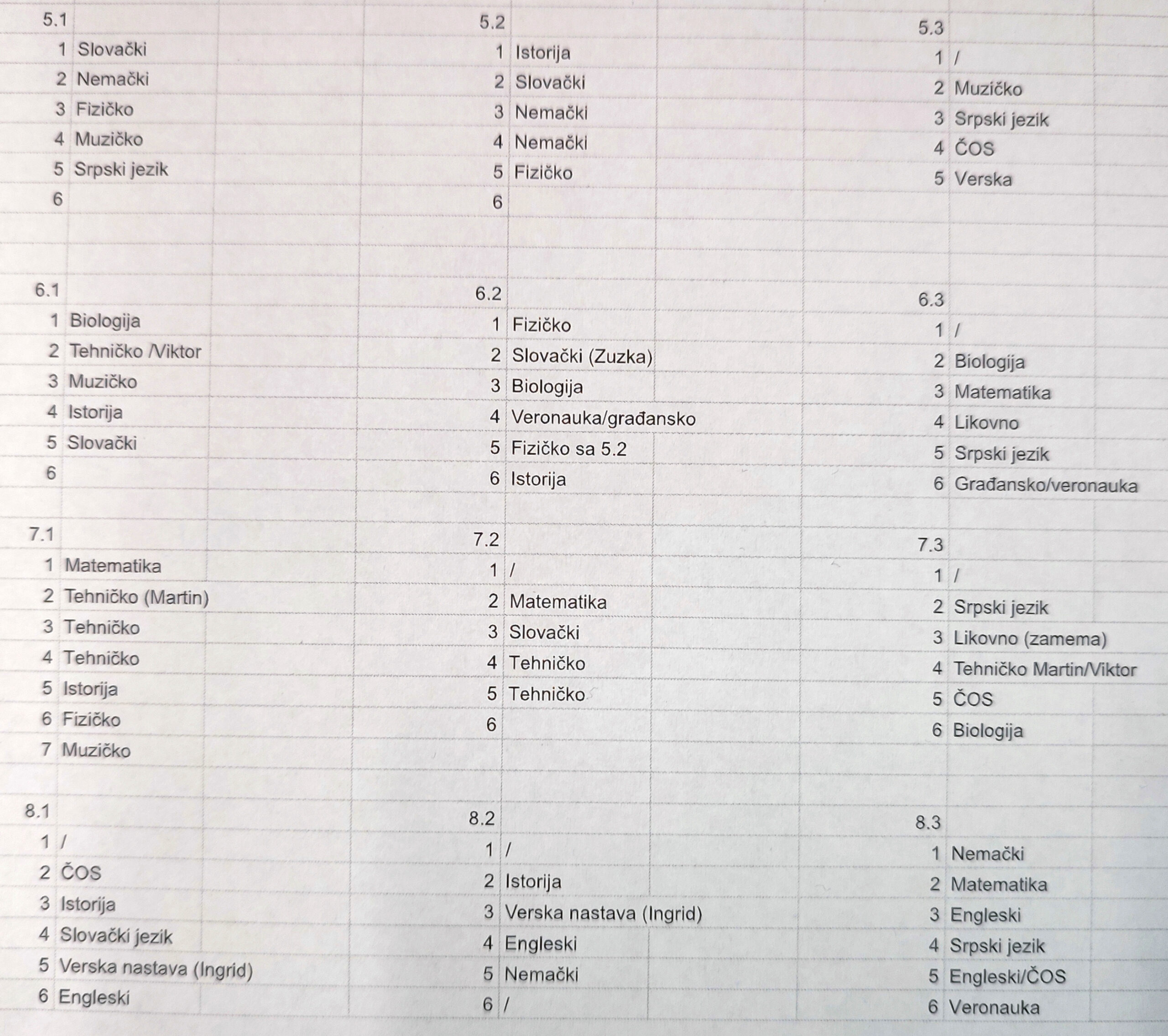Naime, nastava za odeljenja viših razreda počinje u  7:30 po prilagođenom rasporedu časova a časovi će trajati 45 minuta, određena odeljenja nemaju prvi čas. (Ceo raspored možete pogledati na slici pored)