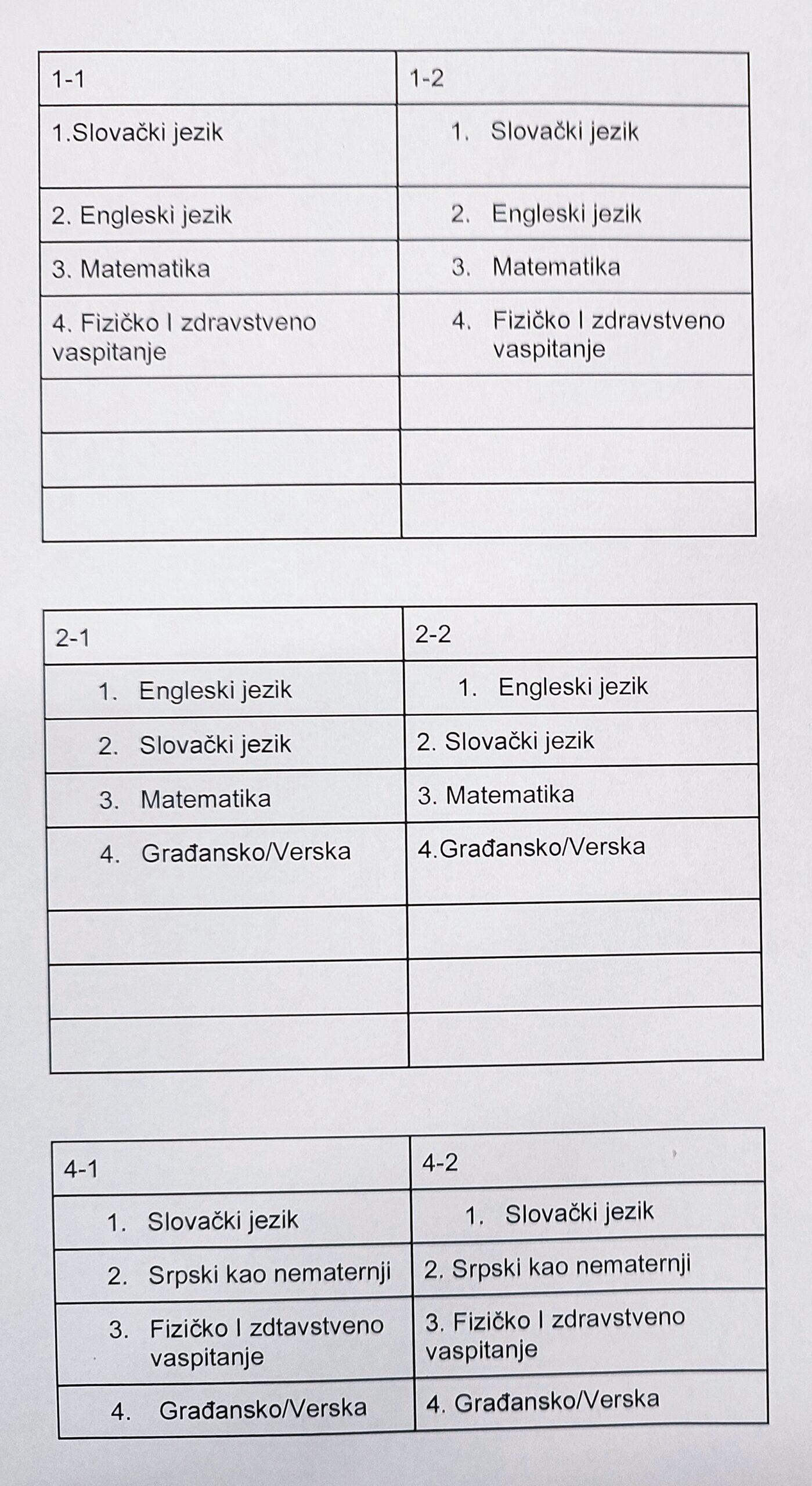 Za odeljenja nižih razreda, nastava počinje u 13:30, odeljenja čiji nastavnici su obustavili rad će imati četiri časa, časovi će trajati 45 minuta uz obezbeđene zamene. (zamene možete pogledati na slici ispod)