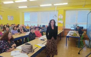 O činnosti našej školy a jej aktivitách mala prednášku riaditeľka Anička Bireš, ktorá predstavila bohatú mimoškolskú činnosť, medzinárodné projekty a úspechy žiakov školy z Kovačice.