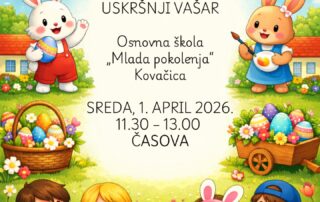 Osnovna škola „Mlada pokolenja“ Kovačica poziva sve da posete Uskršnji vašar koji će biti održan u sredu 1.4.2026., od 11,30 do 13,00 časova.